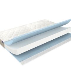 Чехол матраса выполнен из хлопковой ткани, стеганной с синтепоном.
